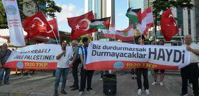 Basın açıklamasında İsrail'in yaptığı saldırılar teşhir edilirken İsrail'in durdurulması gerektiği vurgulandı.