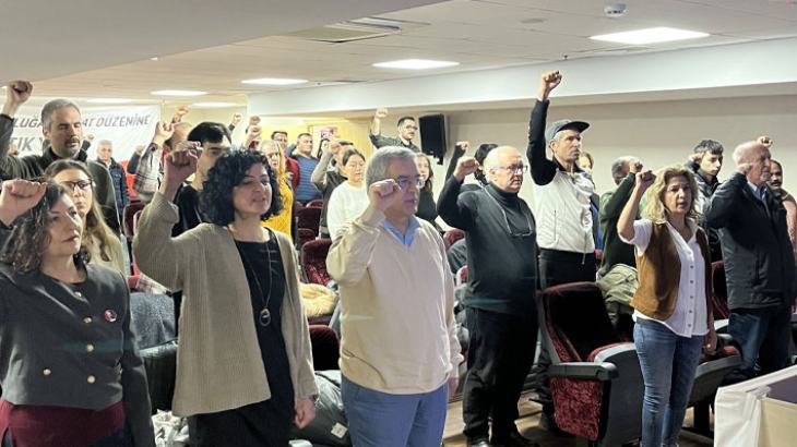 İkinci konuşmacı Petrol İş Eğitim Uzmanı Erhan Kaplan Türkiye’deki genel durumu ele aldı. AKP’nin genel seçimleri kazansa da Meclisteki çoğunluğu ancak MHP ile birleşerek sağlayabildiğini hatırlatan Kaplan, yerel seçimlerde ise CHP’nin birinci parti olarak çıktığını ve AKP’nin 30 büyük şehirden ancak on ikisini kazanabildiğini vurguladı. İşsizlik, pahalılık ve yoksulluğun sorumlusu AKP’nin, halkın tepkisiyle erimeye başladığını fakat son seçimlerden birinci parti olarak çıkan CHP’nin etkili bir muhalefet gösteremediğini söyledi. CHP yönetiminin güçlü olduğu belediyeler üzerinden muhalefeti yükseltmek, sürekli kitle eylemleri ile yoksulluktan bunalan halk kesimlerinin hakkını savunmak yerine AKP’nin güçlü olduğu Meclis içine sıkışan bir muhalefet yolu benimsediğine dikkat çekti. Diğer muhalefet partilerinin, sendikaların, meslek odalarının ve demokratik kitle örgütlerinin de henüz bu durgunluğu aşacak bir atılım gösteremediğini belirtti. Ama diğer yandan birbiri ardına grev ve direnişler yapan işçilerin, sokağa inen emeklilerin, özellikle de haksız hukuksuz grev yasaklarına karşı direnerek haklarını kazanan metal işçilerinin yoksulluğa, baskılara ve sömürüye karşı mücadele için umut verici olduğunu vurguladı.